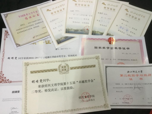 去年暑假,胡靖雯经过层层审核、选拔,参加了中国科学学院全国优秀大学生夏令营。在最终面试中,胡靖雯在全英文对话的情景下,面对评委,对答入流,准确解释专业问题,获得了“优秀营员”称号,取得了中科院研究生初试过国家线无淘汰率复试的资格。今年,胡靖雯以专业第一、全校第二的初试成绩被中科院录取,攻读硕士研究生。