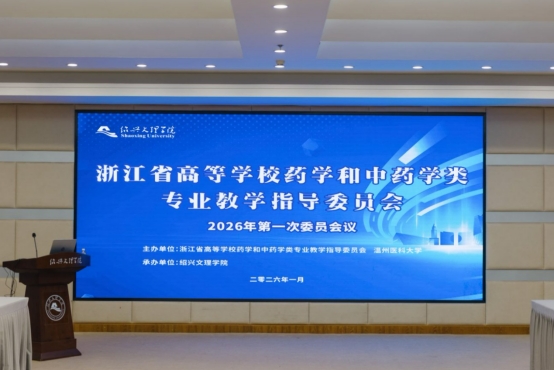 2026年1月10日上午,浙江省高等学校药学和中药学类专业教学指导委员会2026年第一次全体委员会议在绍兴文理学院河西校区图书馆一楼报告厅顺利召开。本次会议由浙江省高等学校药学和中药学类专业教学指导委员会(简称教指委)和温州医科大学主办,绍兴文理学院承办。会议围绕我省药学和中药学类专业建设、人才培养质量以及相关学科竞赛与专业研讨活动的组织推进等议题展开深入研讨。