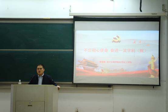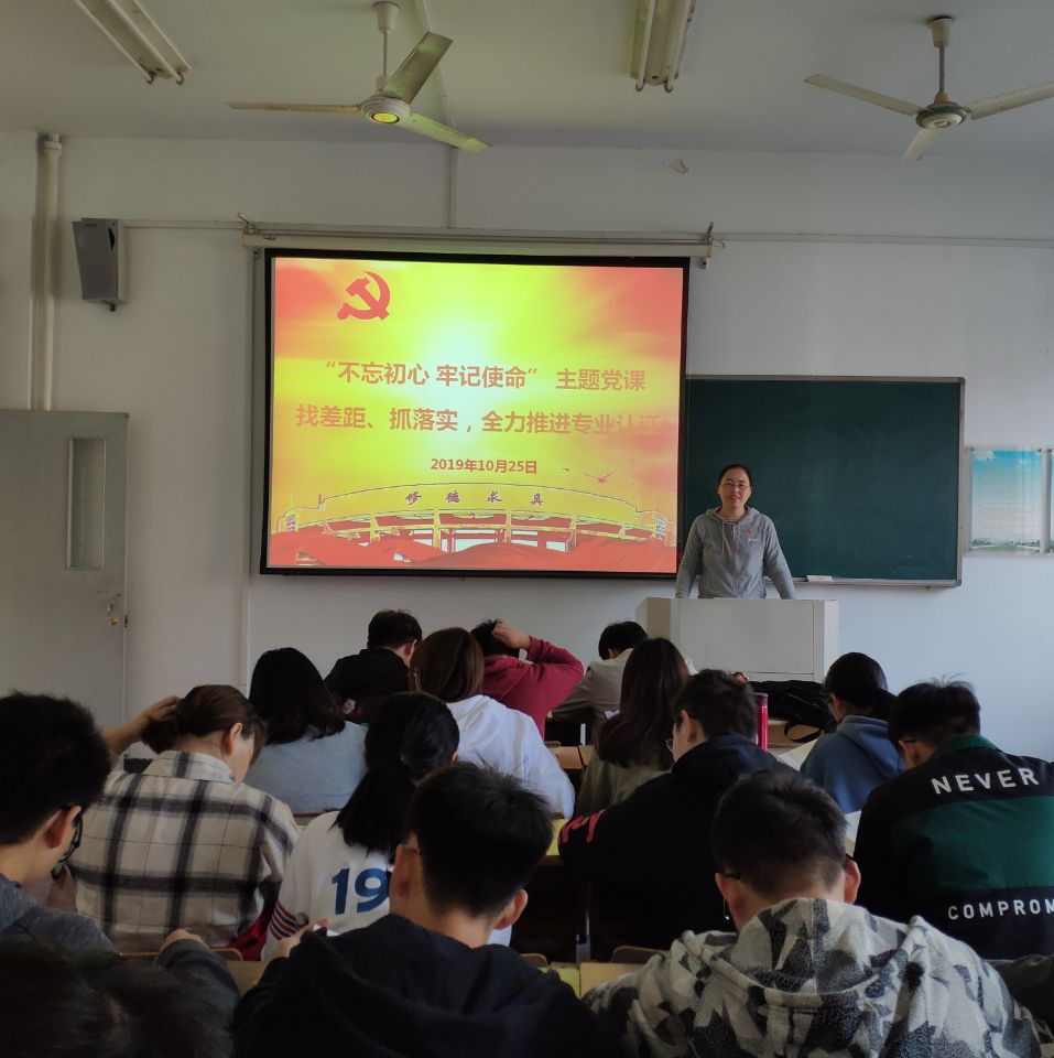 10月25日,学院副院长陶菲菲面向学生代表上了一堂以《讲初心,担使命,大力推进专业认证》为题的专题党课,党课围绕分管工作,结合专业认证和“互联网+”教学模式改革开展的调研活动专题,深入浅出。陶菲菲从工程教育专业认证的重要性、高分子材料与工程专业认证存在的主要问题和改进措施等三个方面指出,在开展工程教育专业认证的关键时期,面对机遇与挑战,我们要不忘初心,牢记使命,这不仅要求我们要立足本职岗位,还要求我们充分发挥党员的先锋模范带头作用,走在前列、主动作为、敢于担当,勇于任事,在各项工作中都要带好头、做榜样,发挥党员作用,团结带领广大教师保持蓬勃向上、奋发有为的士气,保持攻坚克难的勇气,坚定信念,战胜一切困难,完成任务。