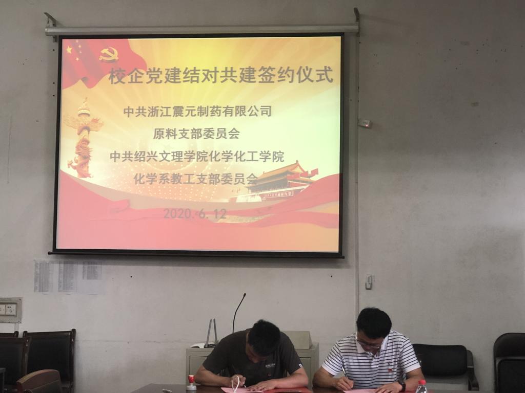 为深入贯彻落实党的十九大精神和习近平新时代中国特色社会主义思想,创新基层党建工作载体,提高基层党建工作水平,进一步探索校企党支部结对共建模式,增强党支部的凝聚力和战斗力�6�12日上午,在学院党委书记魏佩敏同志和党委副书记徐青同志的带领下,化学系教工党支部与来访的浙江震元制药有限公司原料党支部举行了校企党建结对共建签约仪式。学院党委专职组织员俞兰芳同志,化学系教工党支部书记许映杰同志、组织委员方萍同志和宣传委员刘海玲同志参加了本次活动。浙江震元制药有限公司原料党支部书记王奇伟同志、宣传兼纪律委员潘岳锋同志、组织委员黄海平同志及支部内其他党员代表出席了签约仪式�
