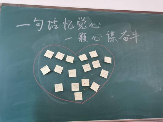 最后,支部开展了“一句话忆党心、一颗心谋奋斗”我来向党表白活动,全体支部党员同学,写下了对党的一句衷心话,共同粘贴在红心中!