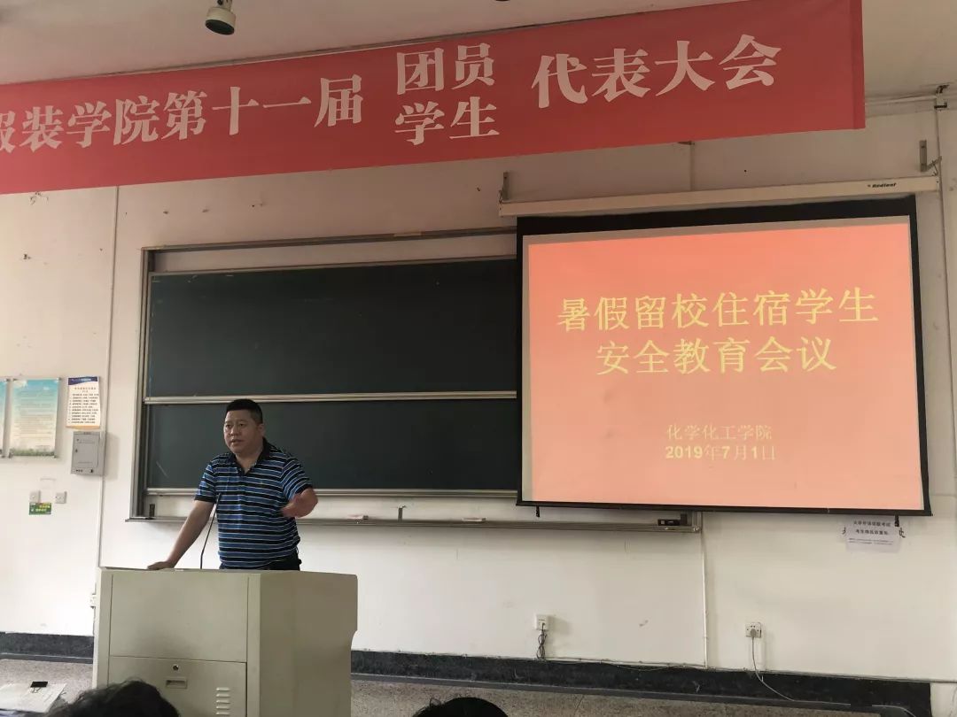 2019年暑假留校住宿学生安全教育会议在理工楼134教室顺利召开。学院党委副书记徐青老师、学生科副科长章江燕老师、树人书院负责人田晓彦老师、学院研究生辅导员赵健老师以及全体留宿学生参加,会议由韩超峰老师主持。