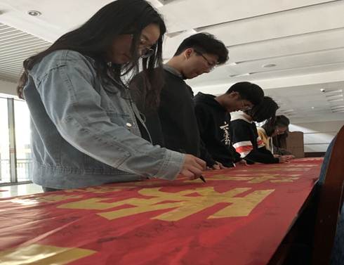 在会场外面,参加会议的全体学生在阅读建设优良学风倡议书后纷纷在活动横幅上签上了自己的姓名。上周,学院也通过召开年级大会的形式对全院学生进行了学风建设动员,重申了各项规章制度�
