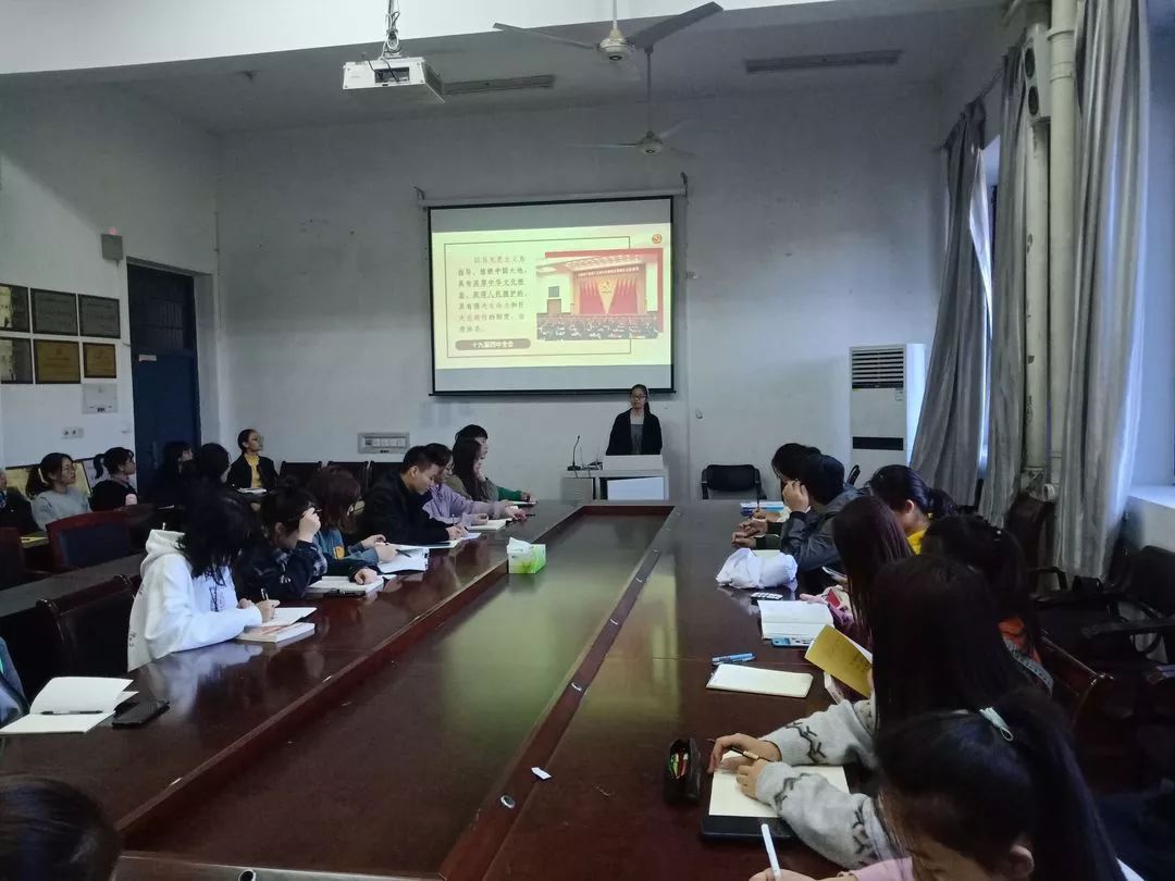 团校第五期学生干部培训班在志廉楼136会议室开展集中学习十九届四中全会精神主题团课。此次团课特别邀请我校习近平新时代中国特色社会主义思想学生研习会宣讲团前来授课。