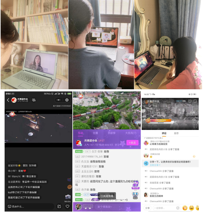 全体青年学生积极参加共青团中央在学习强国平台以及微博、微信、Bilibili、快手、抖音、今日头条和中国青年报客户端、中国青年网、中青在线、斗鱼、小红书等各大网络平台同步开展的“让青春为祖国绽放”网上主题团日活动。在活动过程中,同学们不仅感受到了“挺身而出、迎难而上”的爱国主义精神,还听到了“时代 责任”的对话,更看到了“闻令而动、担当重任”的青年力量。同学们积极留言并且参与各项话题,发出正能量声音。