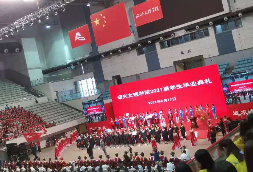 2021届本科毕业生学位授予仪式在学校体育馆隆重举行。绍兴文理学院校长王建力教授,学院领导和部分教师代表出席了典礼,仪式在庄严的国歌声中拉开序幕。